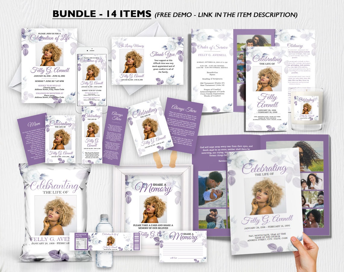 Beerdigung Bundle Set, Beerdigung Programm Vorlage, Lila Rose Thema...