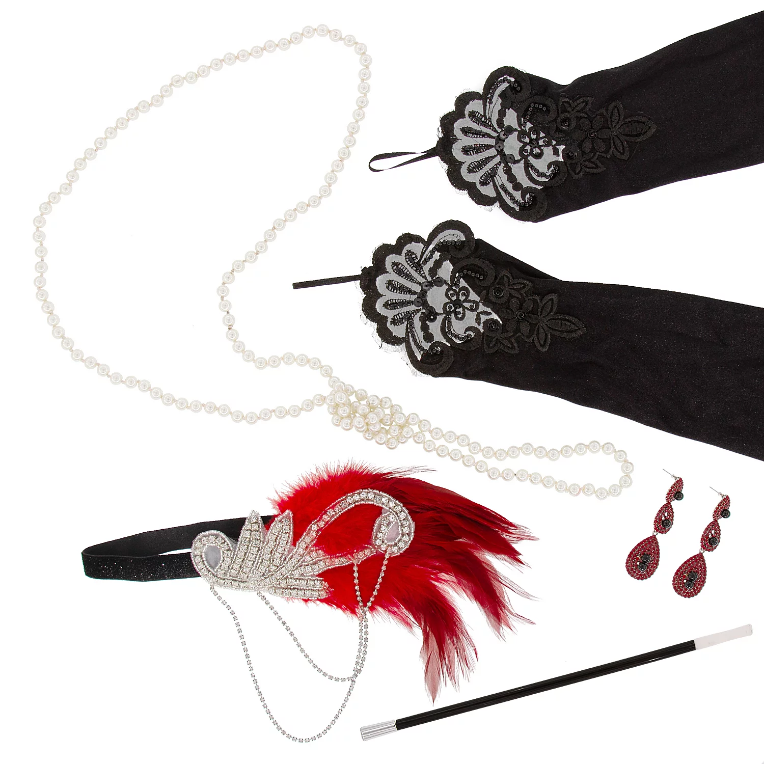 Set 20er Jahre, 7-teilig, schwarz/rot