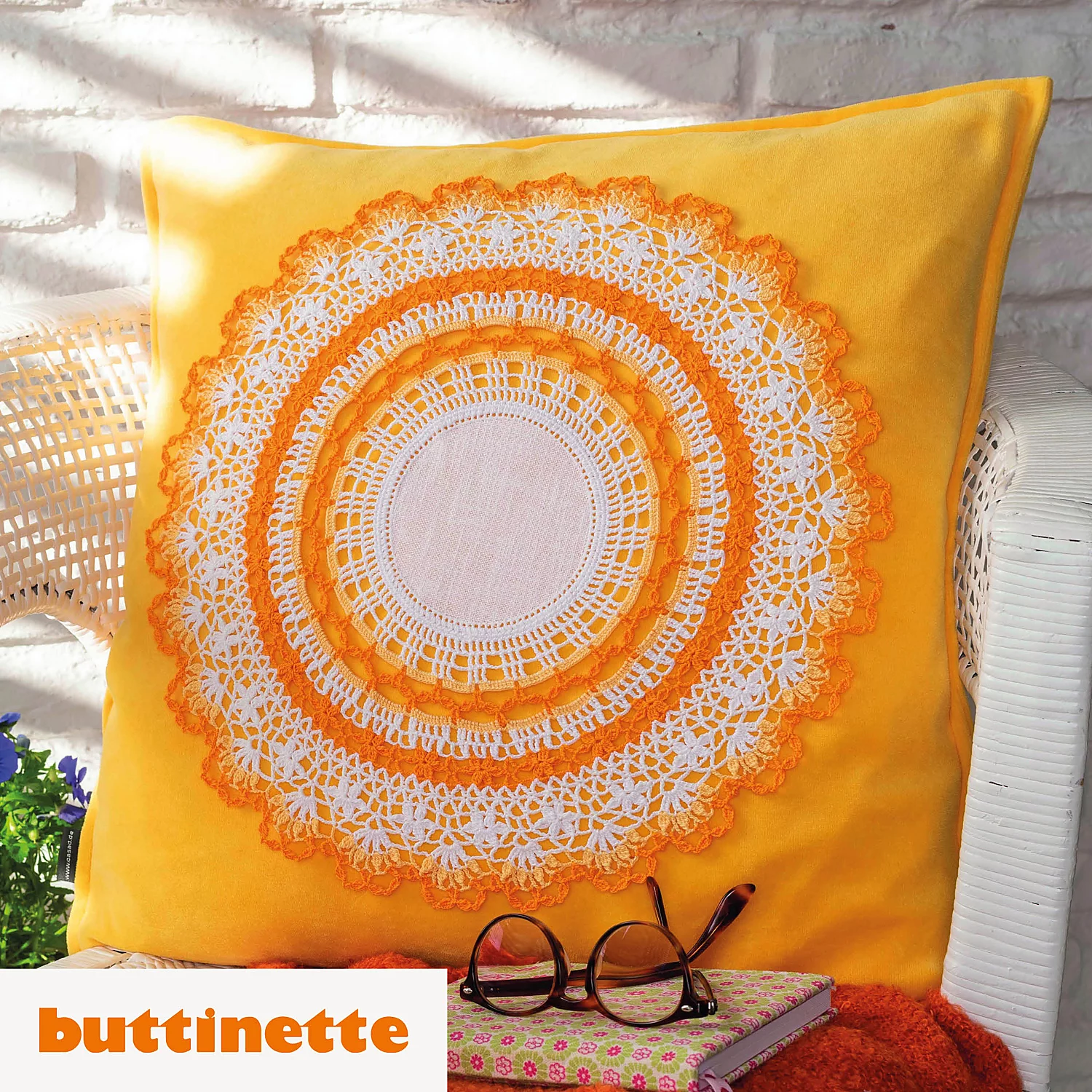 Häkelanleitung – Deckchen mit Stoffmitte aus Woll Butt Diana. Gehäkelter Sonnengru&s...
