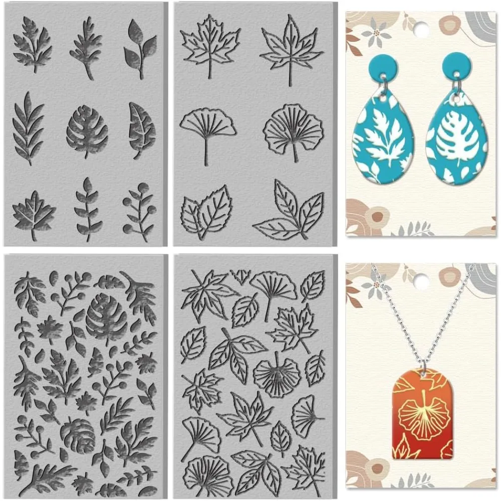 4 Stück einzelne Ginkgoblatt-Muster, Polymer-Ton-Textur, Ahornblatt, Gummi-Ton-Textur, Matte f&...
