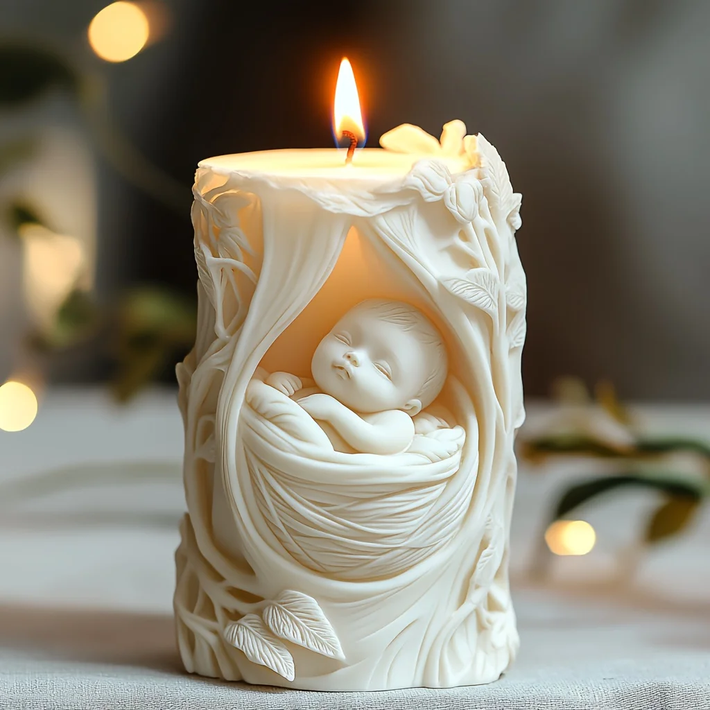 3D süße Wiege Junge zylindrische Kerze Silikonform Engel Junge Mädchen schlafen in d...