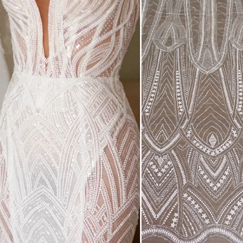 NO.226 Off White Mode Geometrische braut Mode französisch spitze stoff 51 zoll hochzeit kleid s...