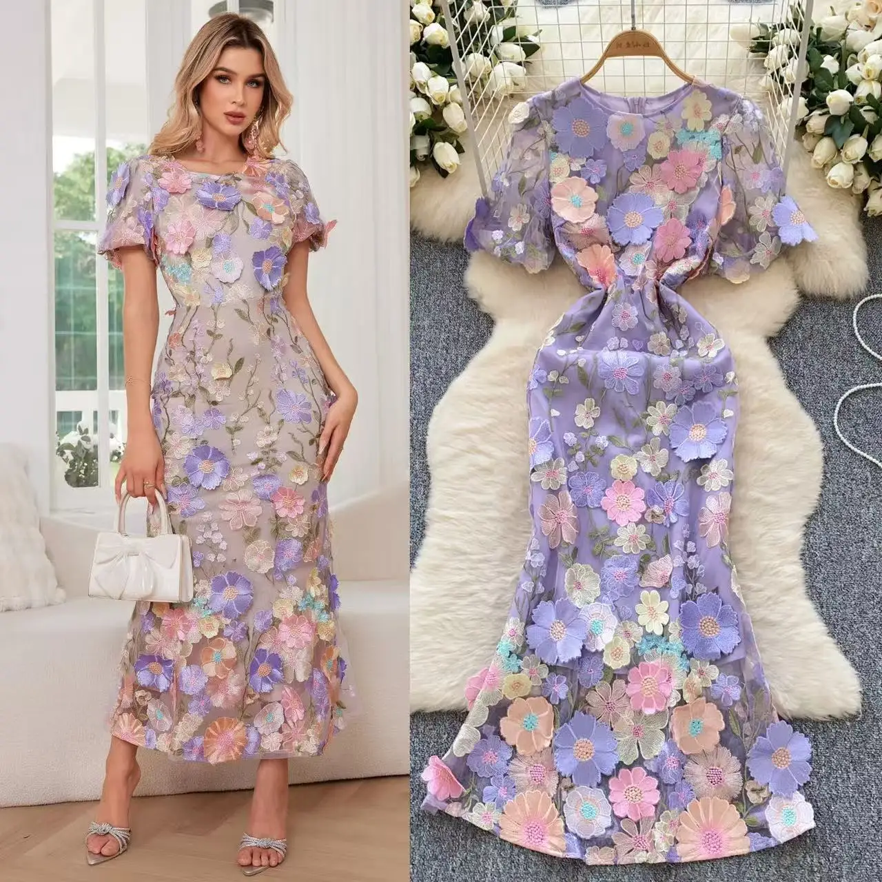 5 Yards Einseitige Bunte 3D Blume Spitze Stoff DIY Hochzeit Kleid Luxus Neueste Breite 130 cm Hei&sz...