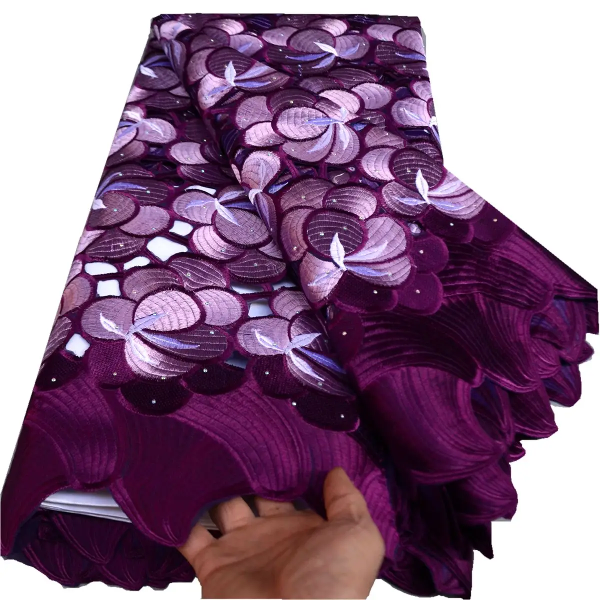 Nigerian isches Spitzens toff mit Steinen zum Nähen der Hochzeit, lila nigerian ische Spitze, h...