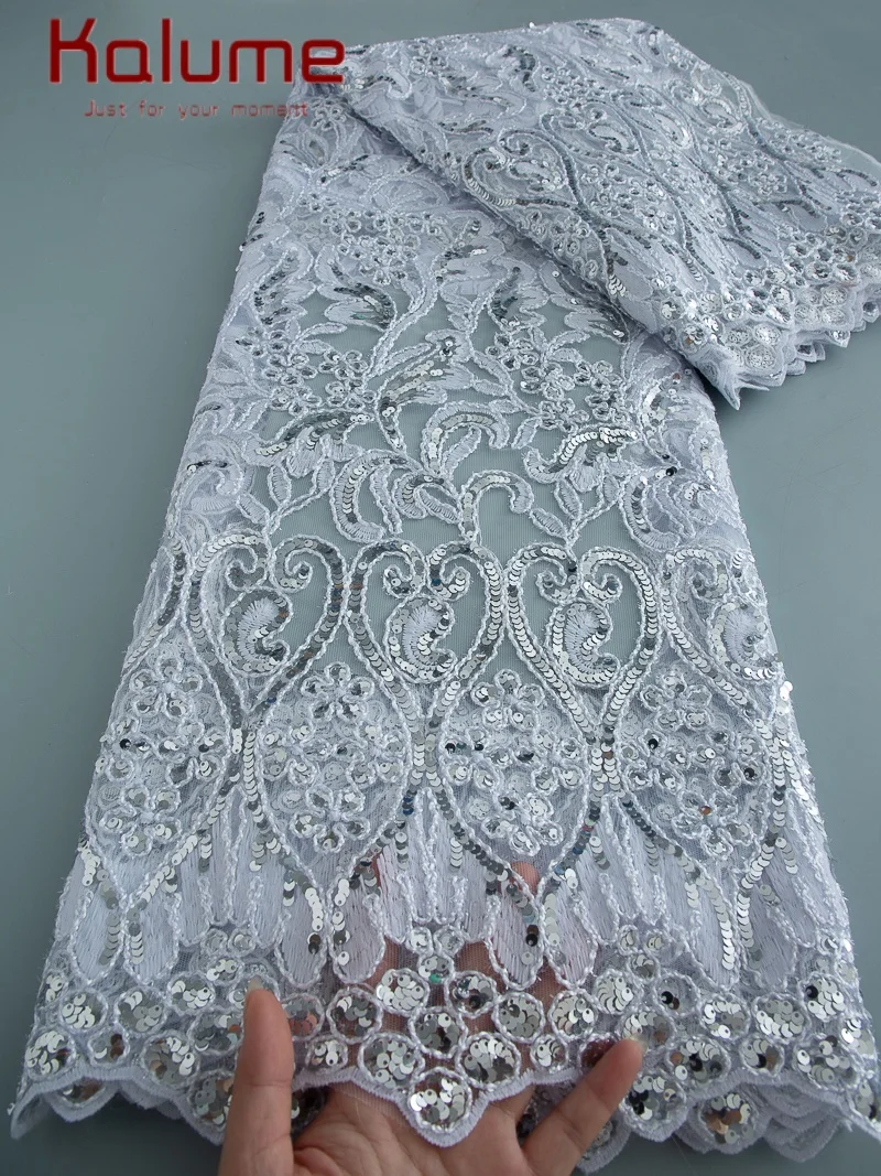 Kalume Afrikanische Tüll Net Spitze Stoff Hochzeit Weiße Spitze Pailletten Mesh Spitze St...