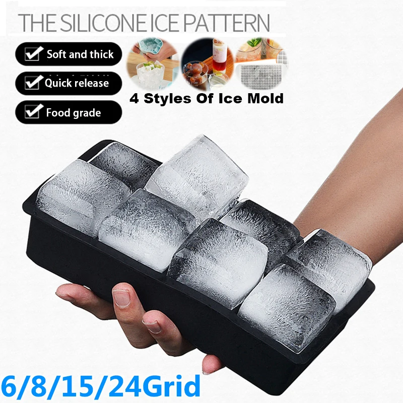 4/6/8/15 Grid Big Ice Tray Mold Giant Jumbo Large Food Grade Silikon Ice Cube Square Tray Mold DIY I...