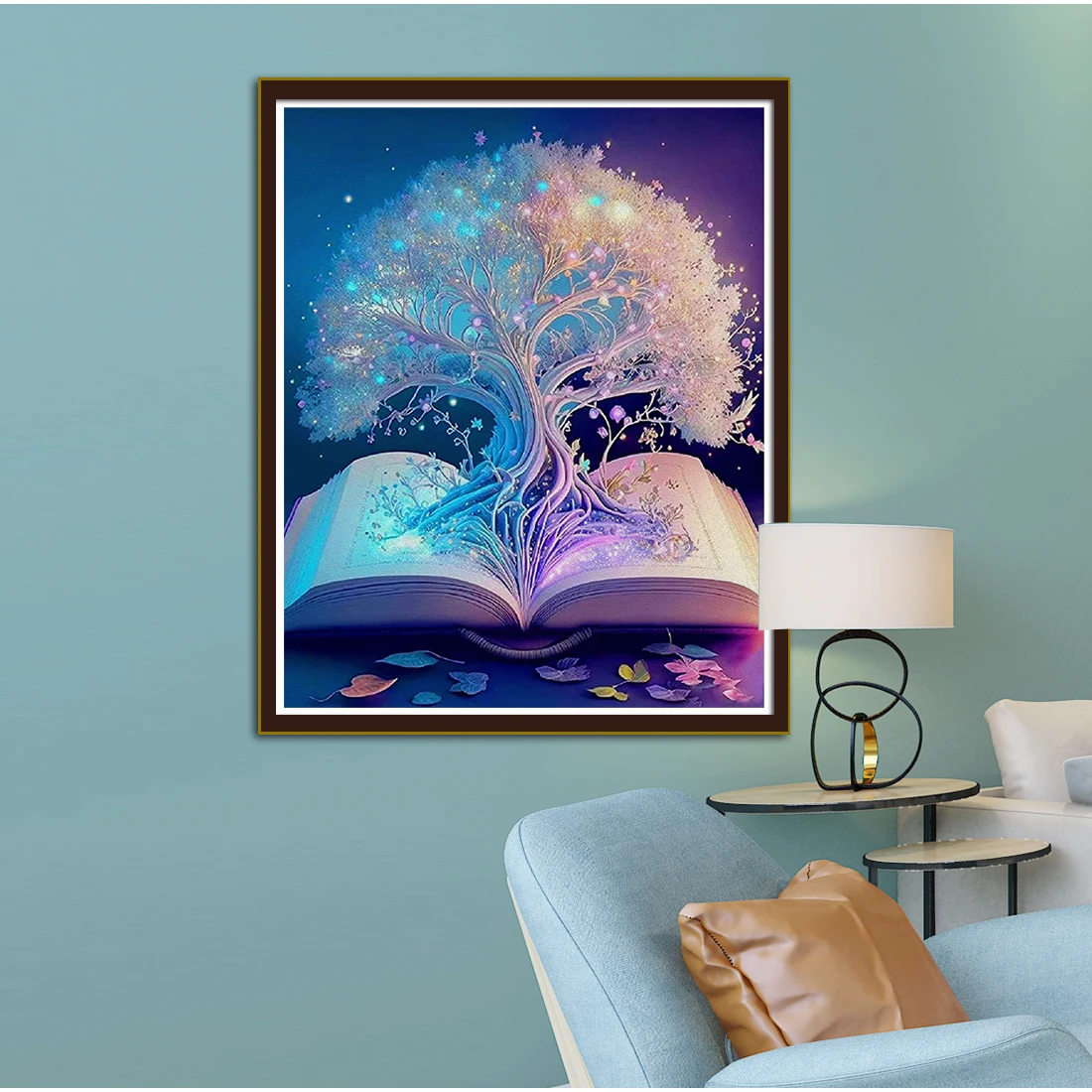 A Book Tree's Dream Wonderland Cross-Stitch Kit DIY Printed Embroider Moonlight Tree Pattern Growth ...