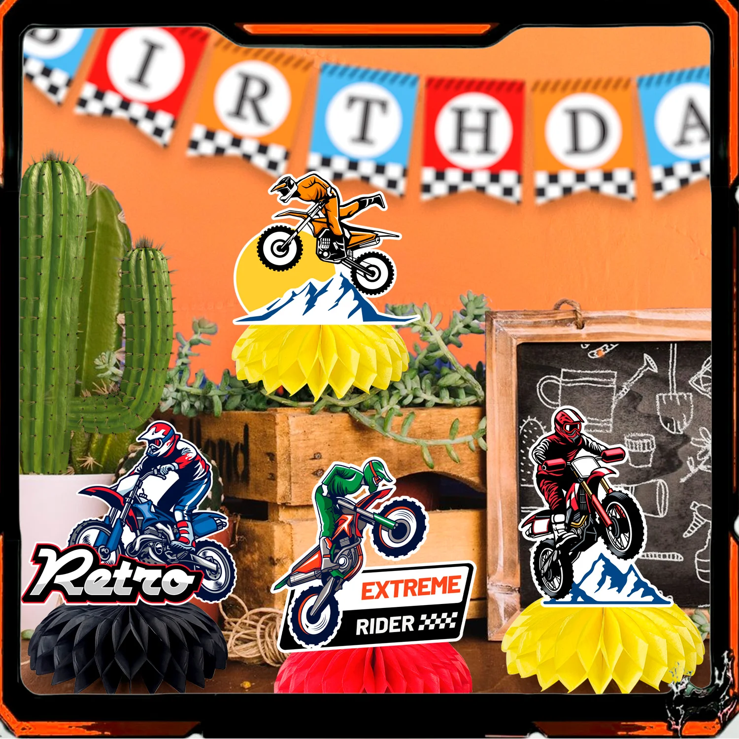 Motorrad Happy Birthday Waben-Mittelstücke, 9 Stück Motor...