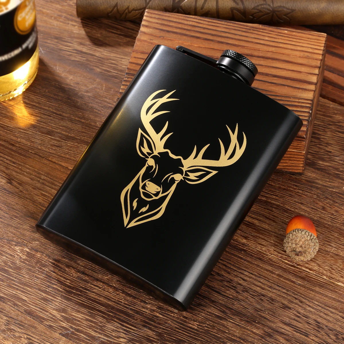 LKKCHER Hirschkopf-Dekor-Muster, 8 oz, Flachmann, Weintopf, Taschen...