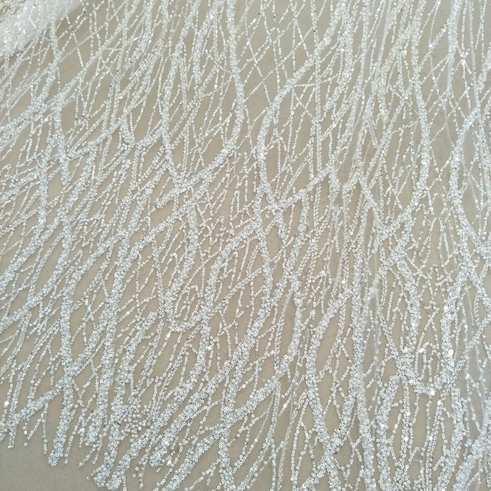 Elfenbeinfarbener Spitzenstoff mit Pailletten, Hochzeitskleid, Brautkleid, neueste Qualität, Ve...