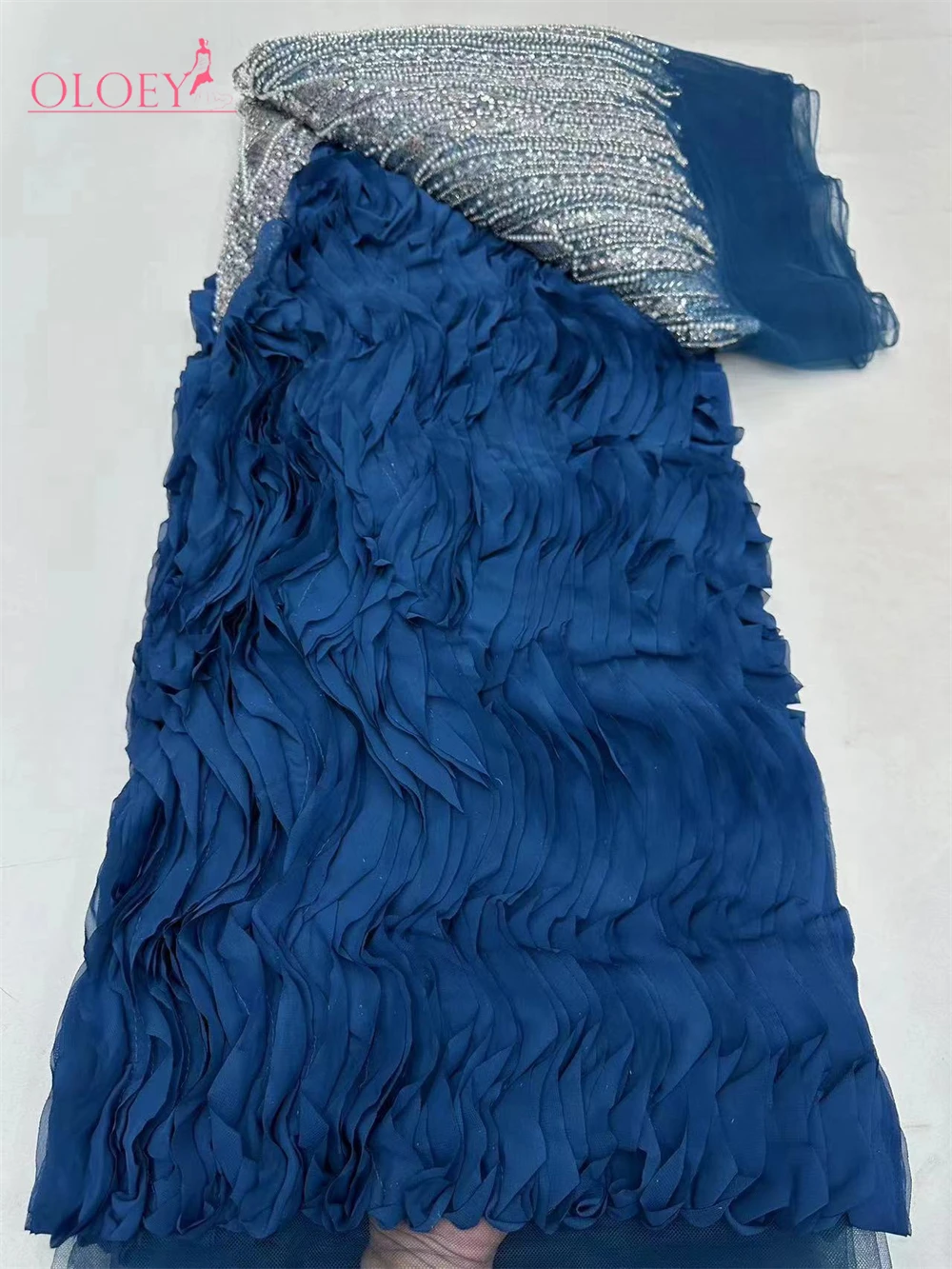 Eleganter französischer Stickerei-Mesh-Perlen-Spitzenstoff, afrikanische nigerianische Paillett...