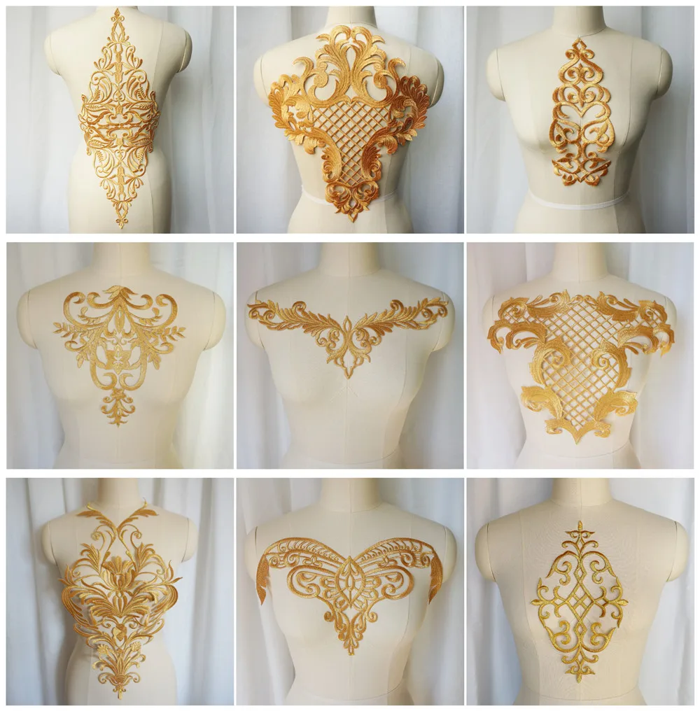 Gold Stickerei Barock Gitter Pailletten Blume Applikation Nähen Eisen Patch Hochzeitskleid Brau...