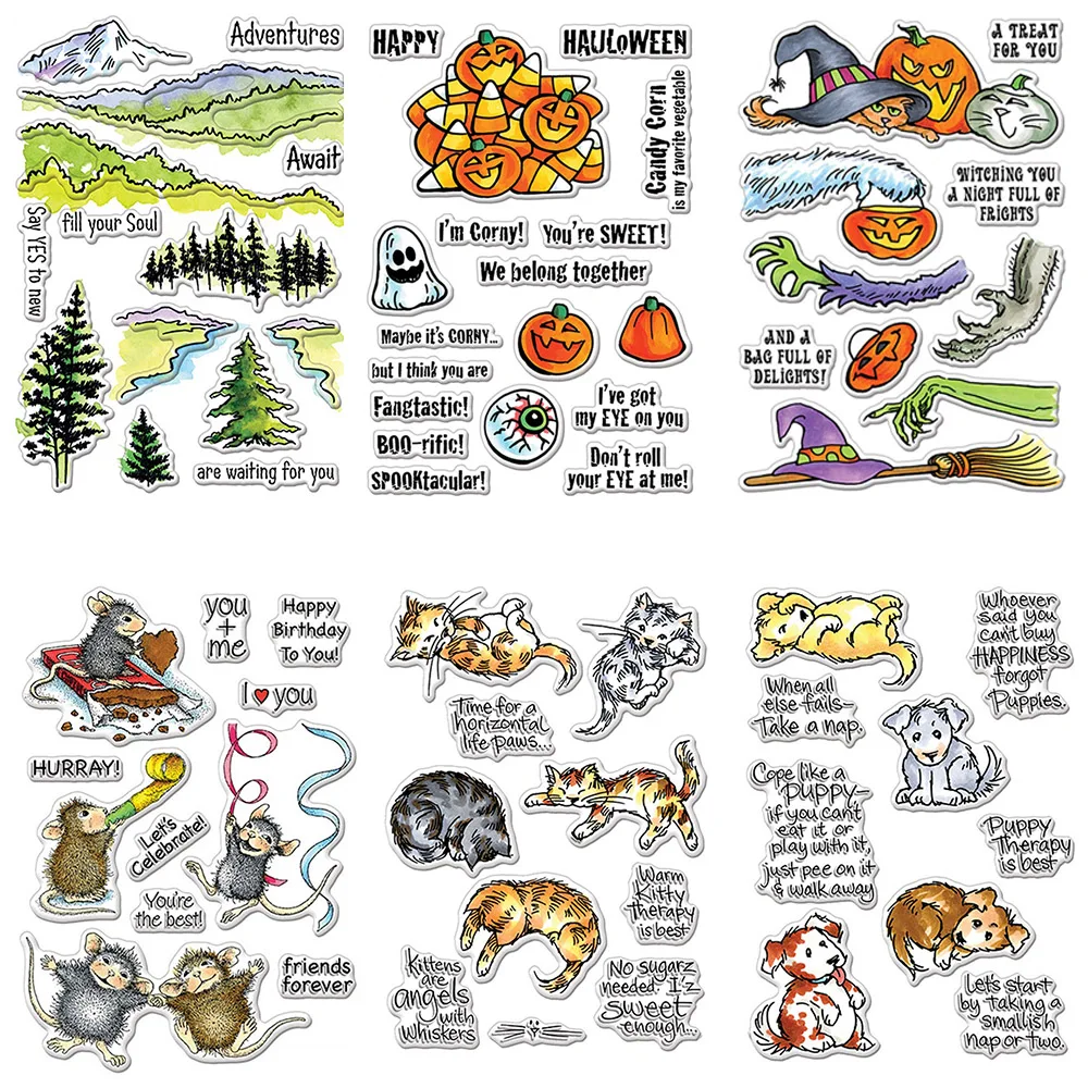 Süße Tiere Hund/Katze/Maus klare Briefmarken Weihnachten Halloween Kürbis/Geist/Hexe...