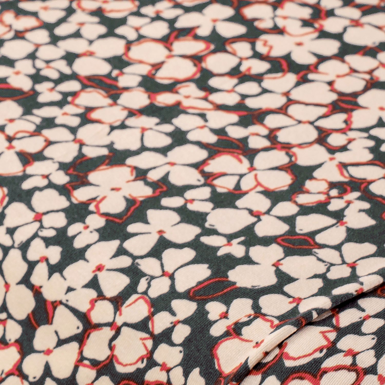 Viskose-Jersey Blumen, Farbe: grüngrau-color, bi-elastisch, Motivgröße Blume gro&szl...