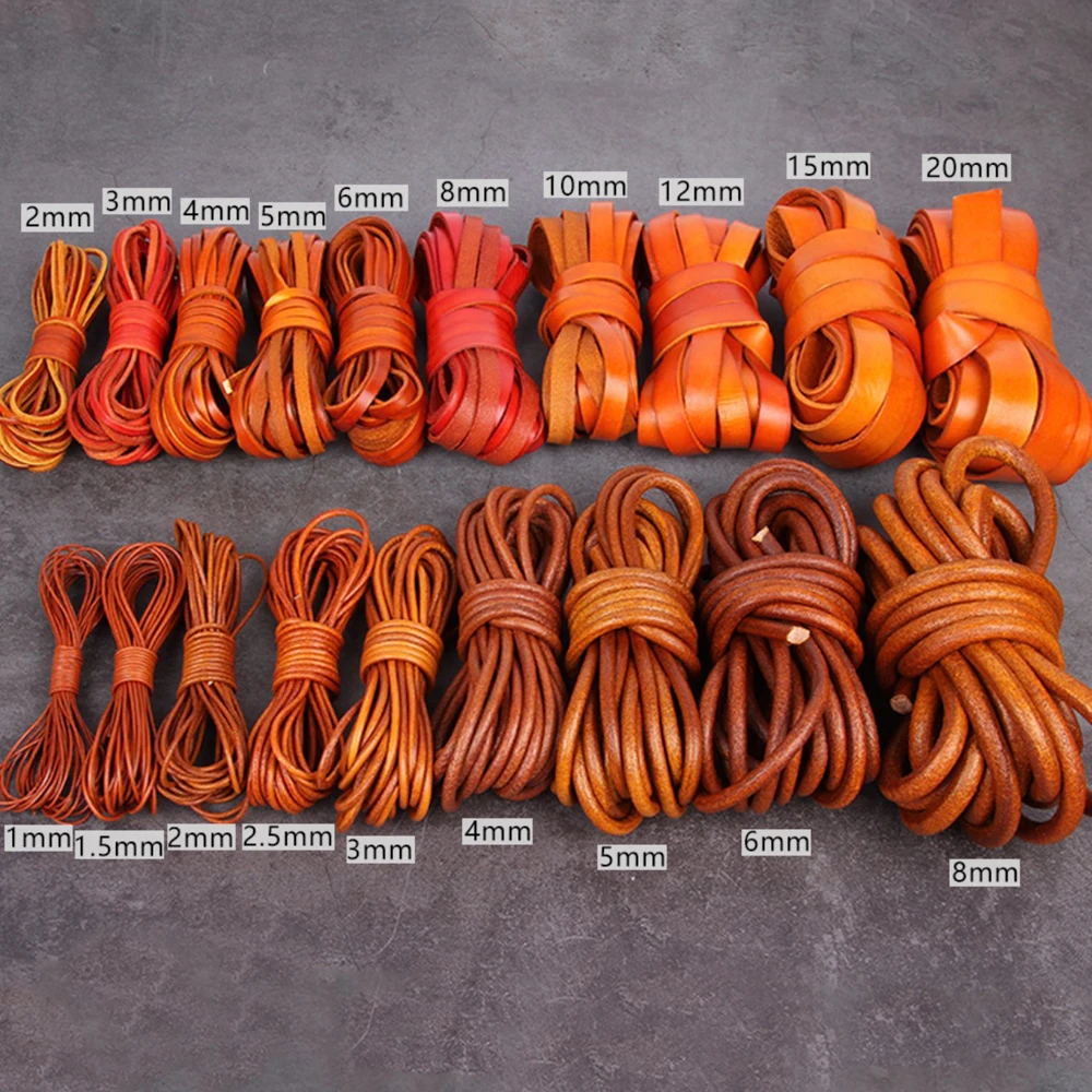 2 Meter 1/2/3/4/5/6/8 mm Retro Gelb Kaffee Kuh Lederband Erkenntnisse Flache/Runde Lederband Schnur ...