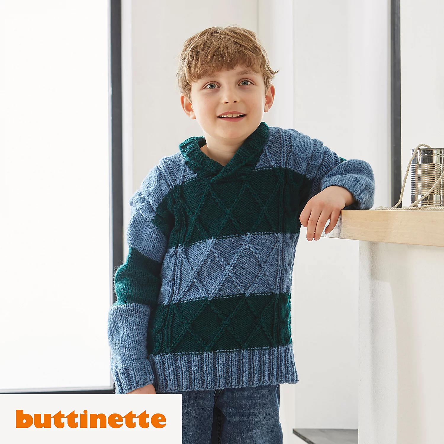 Strickanleitung – Jungs-Pullover aus Woll Butt Heidi. Dieser Pullover mit Schalkragen ist ein ...