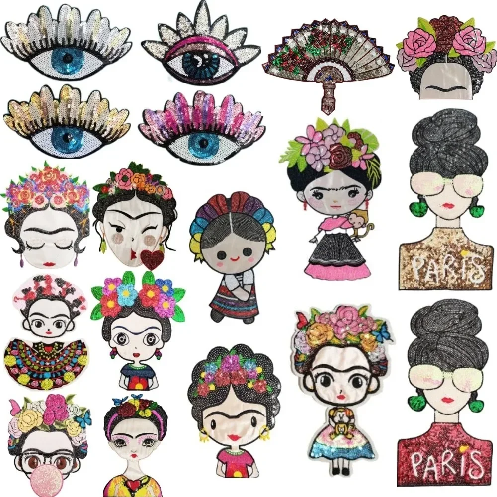 Pailletten-Aufnäher für Kleidung, mexikanische Cartoon-Figur, Applikationen, Augen, Perlen...