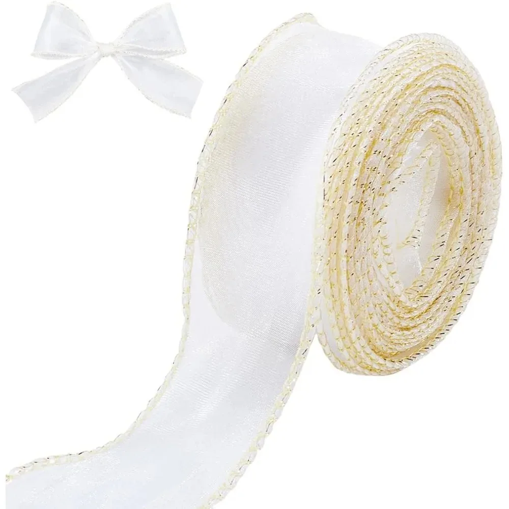 1-5/8 Zoll breites Champagner-Geschenkband aus transparentem Gold mit Draht, Organza-Tüll, hand...