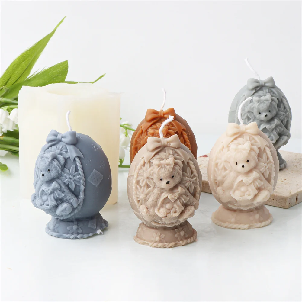 Bogenwiege, bezaubernder Bär, Silikon-Kerzenform, 3D-Tier-Design, duftende Seife, Gips, Harz, W...