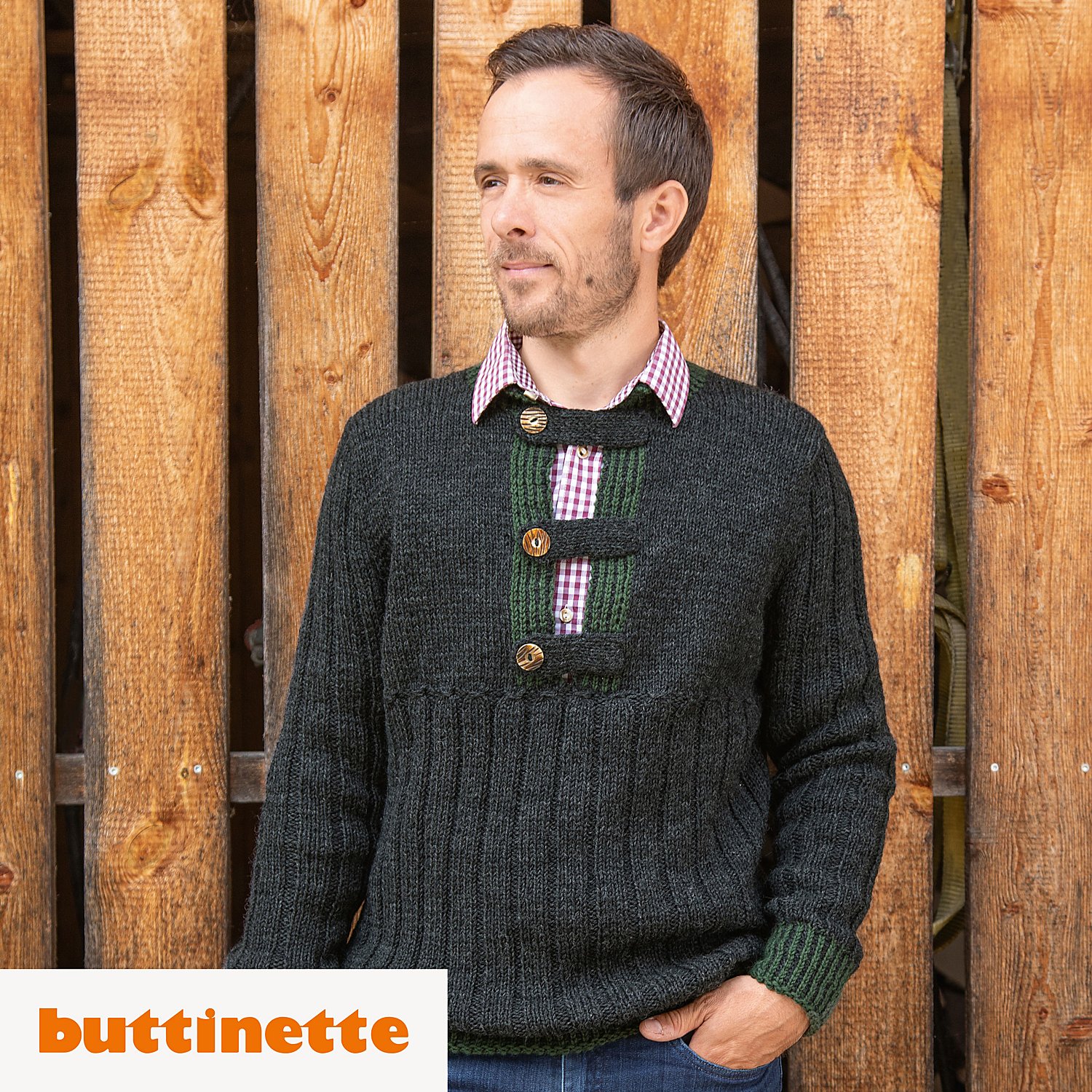 Strickanleitung – Herrenpullover mit Riegelverschluss Tirol