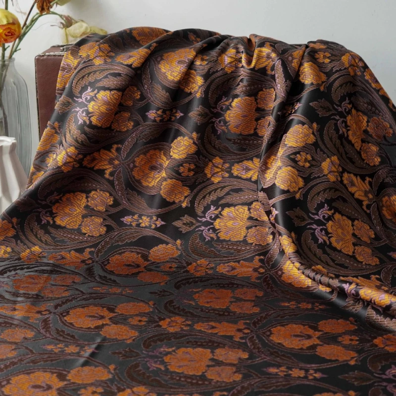 Länge 100 cm, schwarzer Rosen-Jacquard-Stoff, europäisches Scroll-Design, Samtstruktur, Kl...