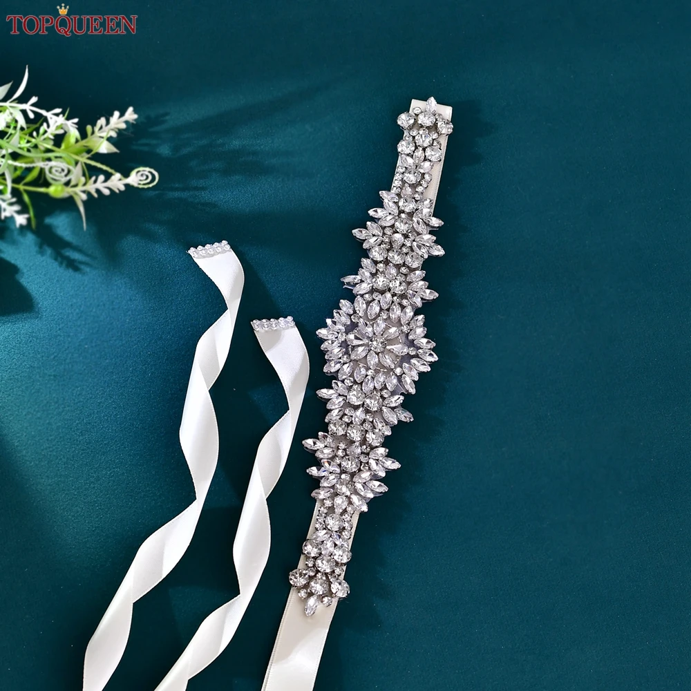 TOPQUEEN S319 Hochzeitsgürtel mit Strasssteinen, glitzerndes Brautkleid, dekorative Schärp...