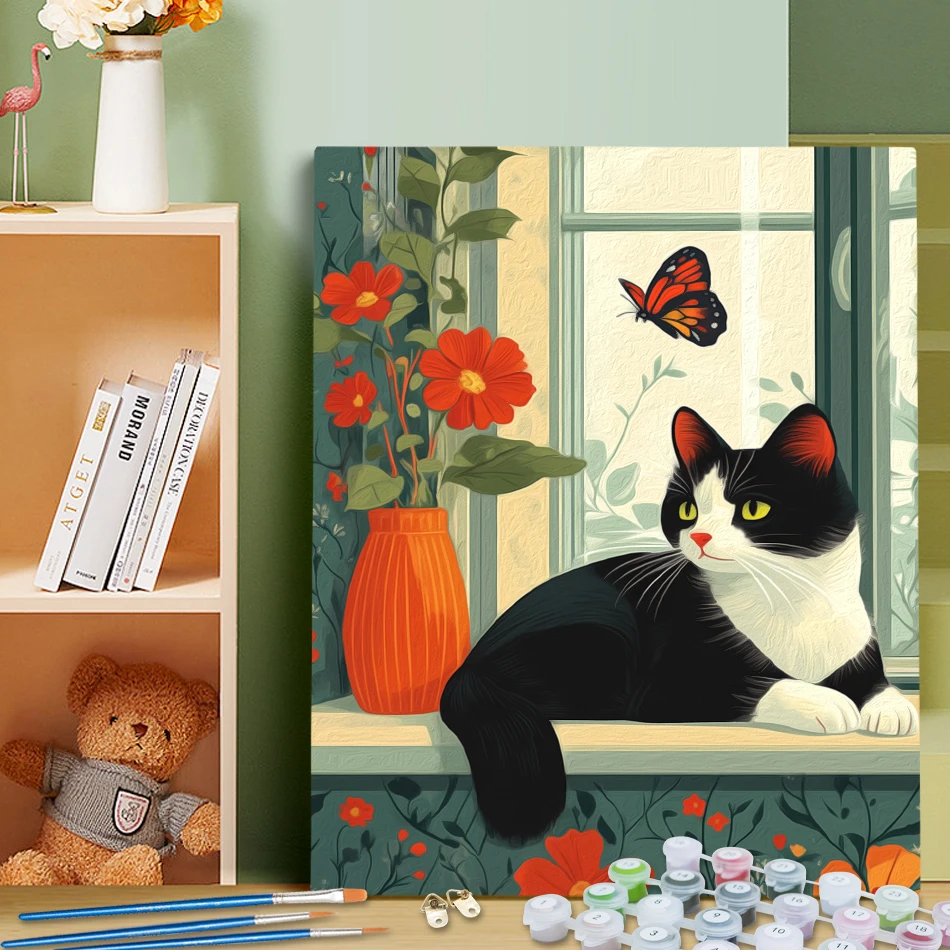 RUOPOTY Malen nach Zahlen, Fensterschweller, Katze, Malen für ...