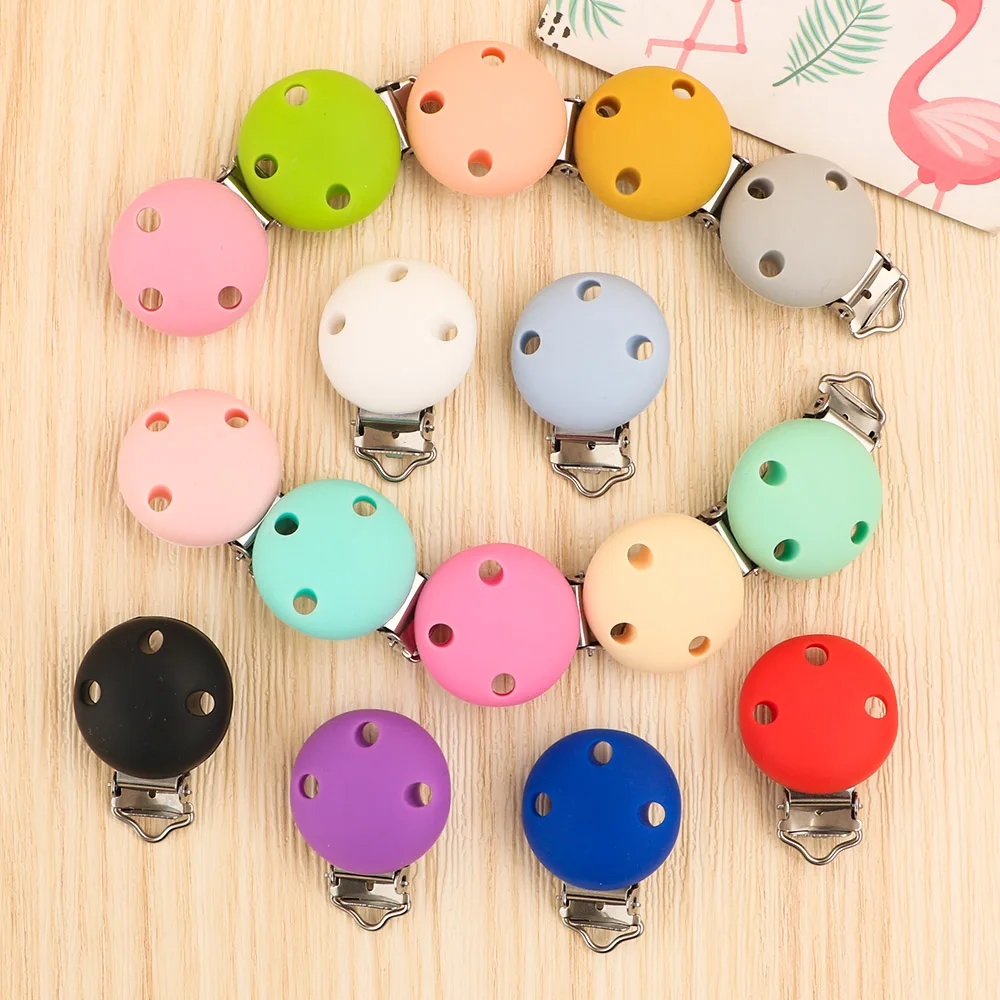 Kovict 5 Stück 30 mm/35 mm Silikon-Clips, runde Form, Schnuller-Clips, DIY-Schnullerkette f&uum...