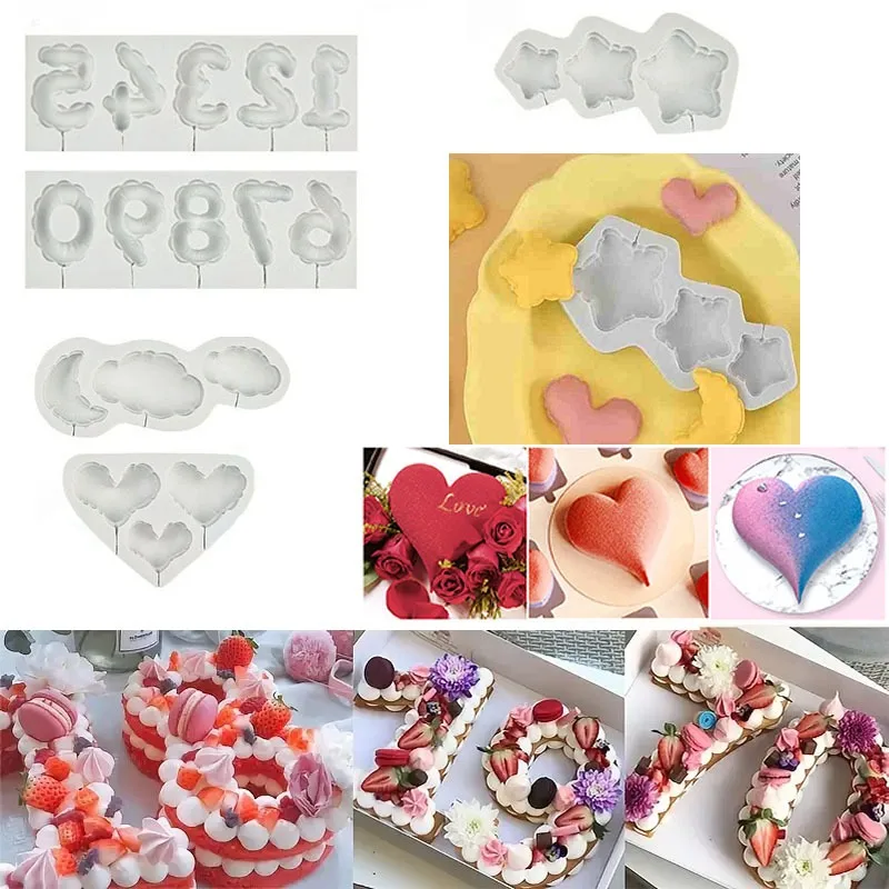 Premium-Silikonform-Set, Zahlen, Lutscher, Herz, Stern, Wolkenformen, ideal für Fondant, Schoko...