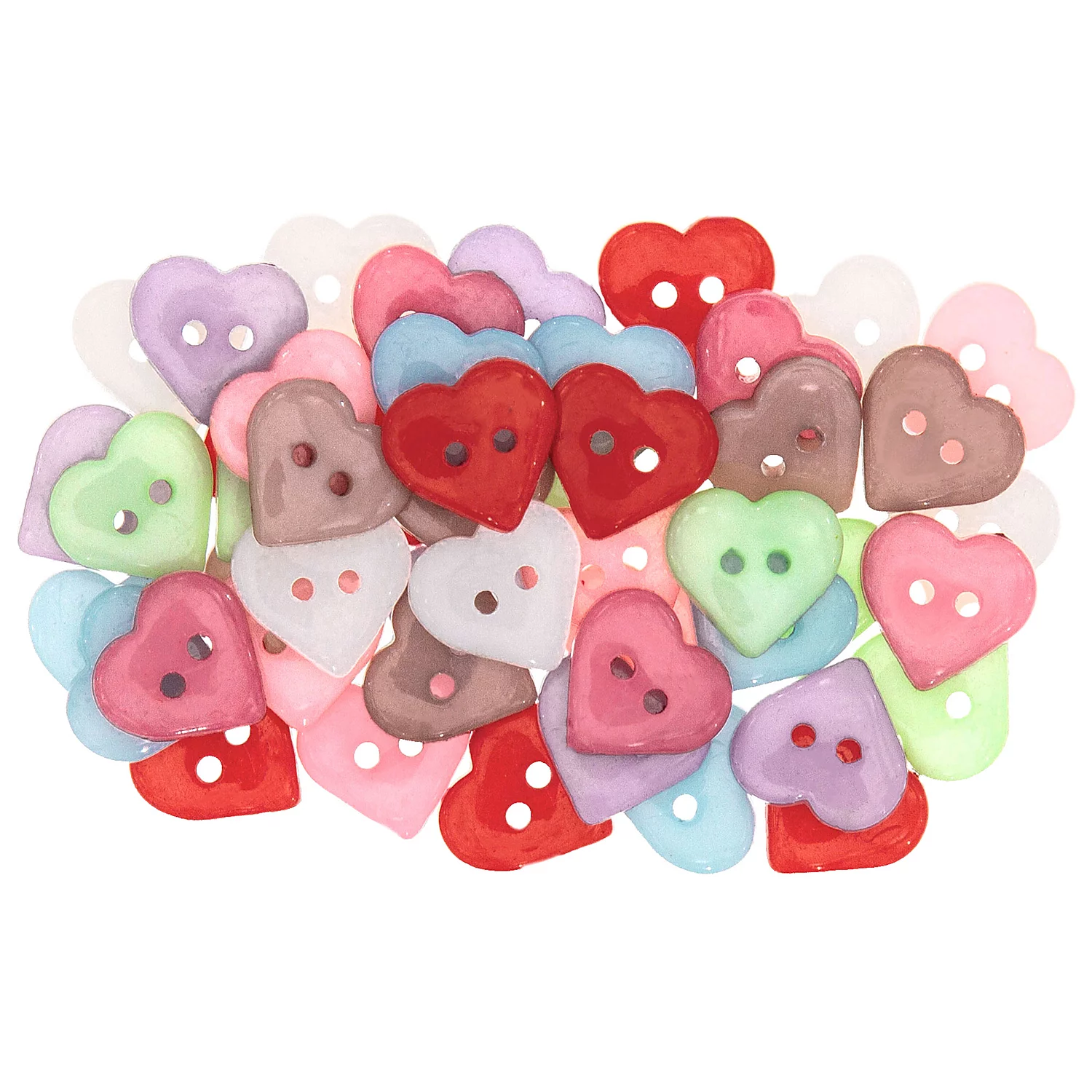 buttinette Knöpfe in Herzform, Farben: rot, mint, pink, grau, weiß, rosa, hellblau, flied...
