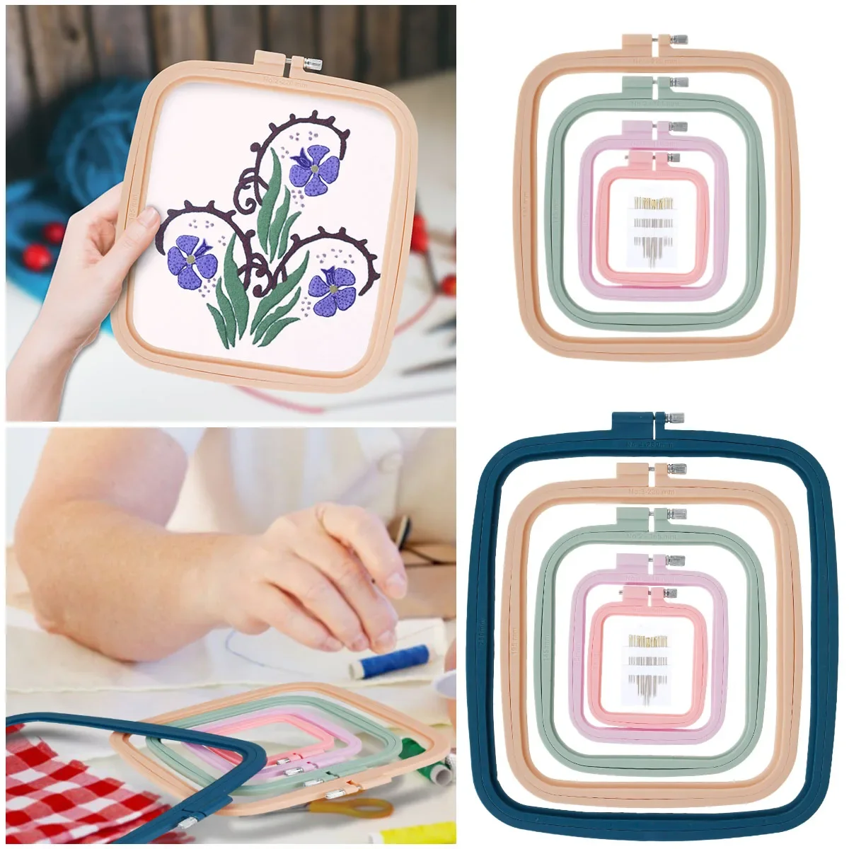 4/5 Stück quadratische Stickrahmen mit 16 Nadeln, verschiedene Farben, Stickrahmen, verschieden...