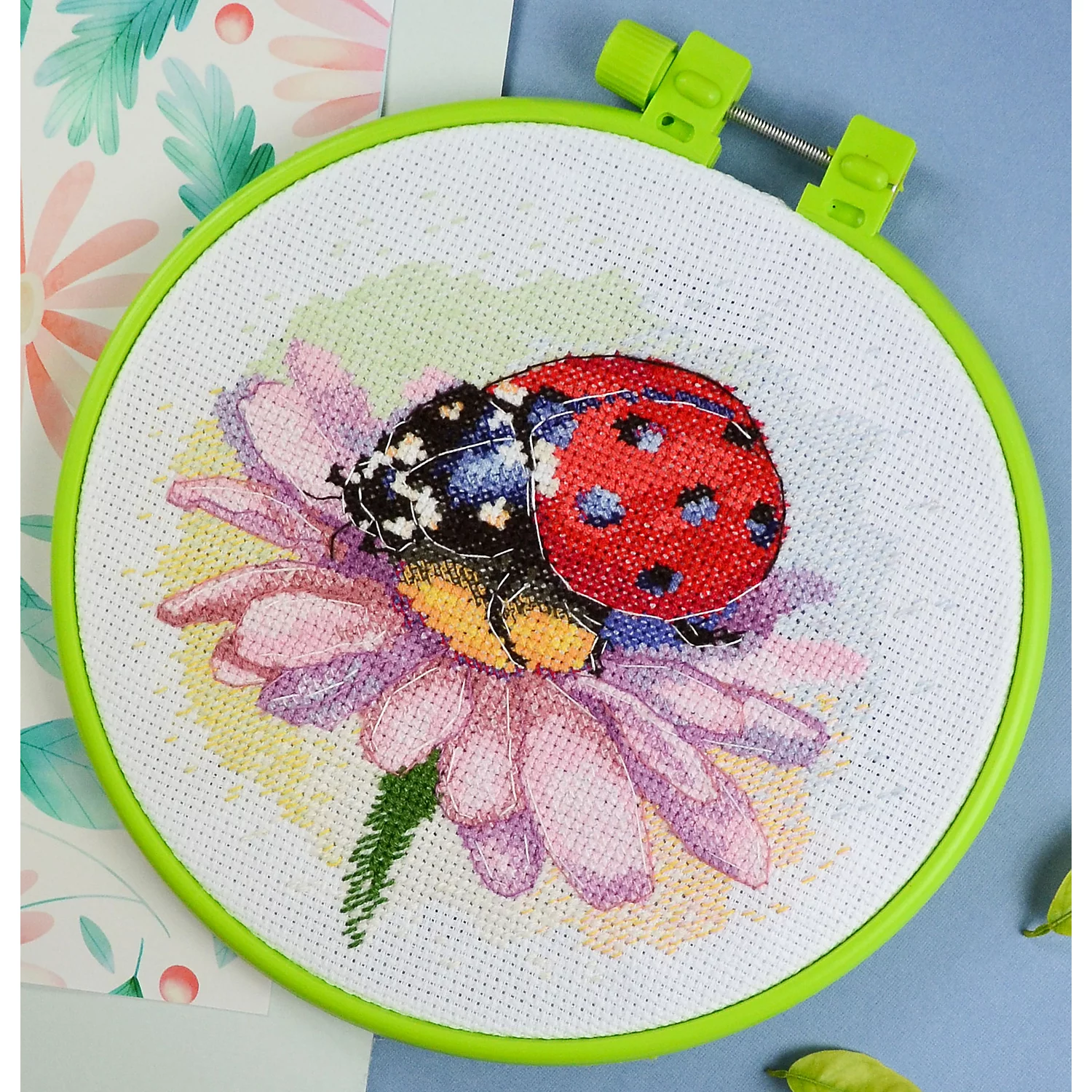 Stickbild Marienkäfer, zum Besticken in Kreuzstich nach Zählvorlage (ca. 5,4 Stiche/cm). K...