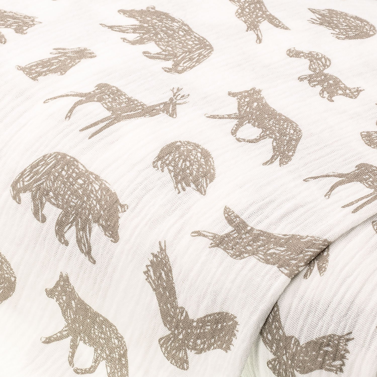 Musselin/Doppel-Gaze Waldtiere“, weiß/greige