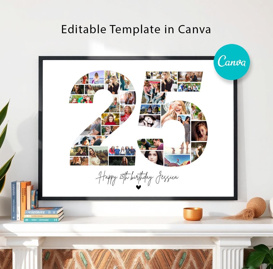 Bearbeitbare 25. Geburtstags-Fotocollage-Vorlage zum 25. Geburtstag, personalisierter 25. Geburtstag...