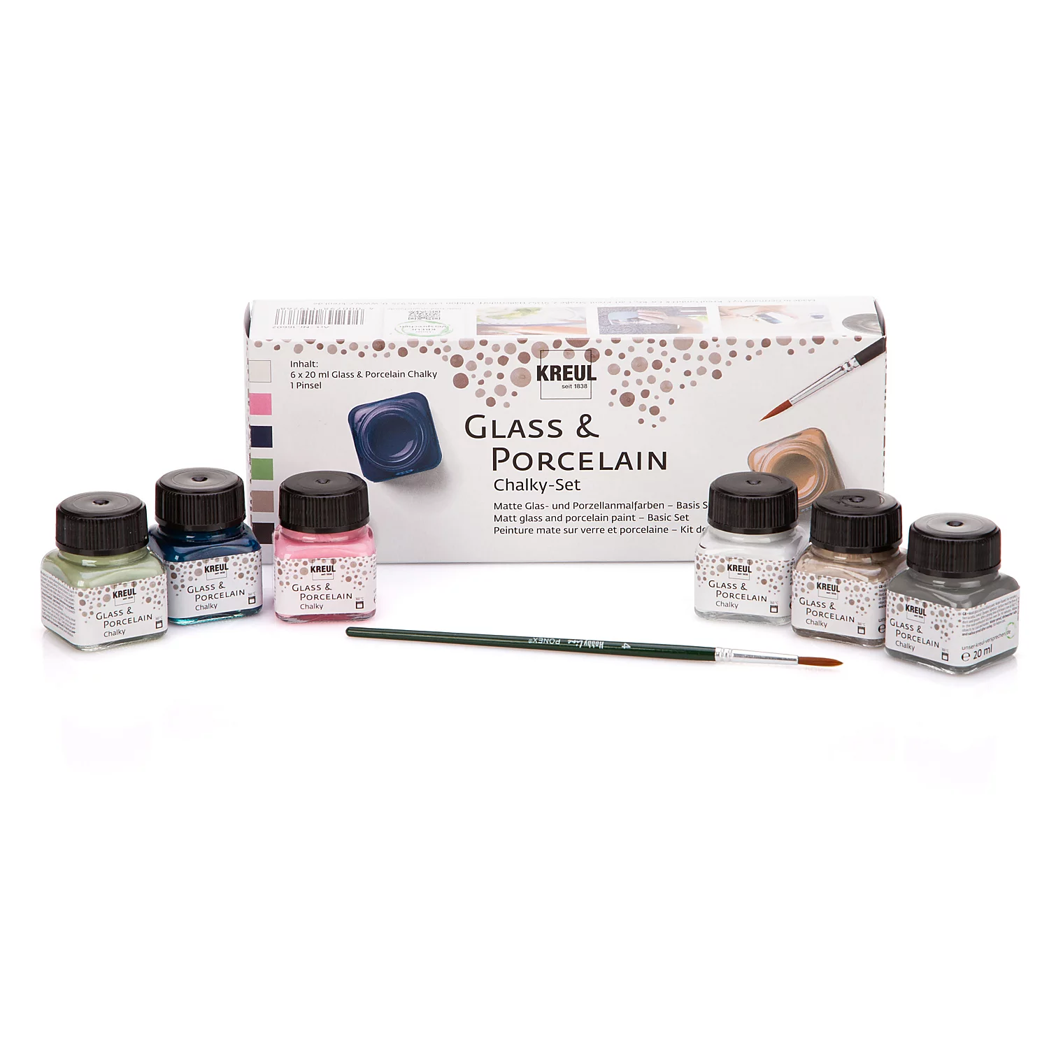 C. Kreul Glas- und Porzellanmalfarben Chalky, 6x 20 ml und Pinsel