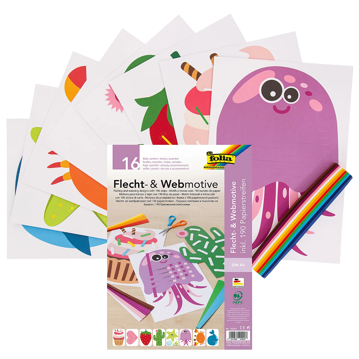 folia Flecht- und Webmotive Tiere mit vorbearbeiteten Bogen zum Flechten und Weben mit Papierstreife...