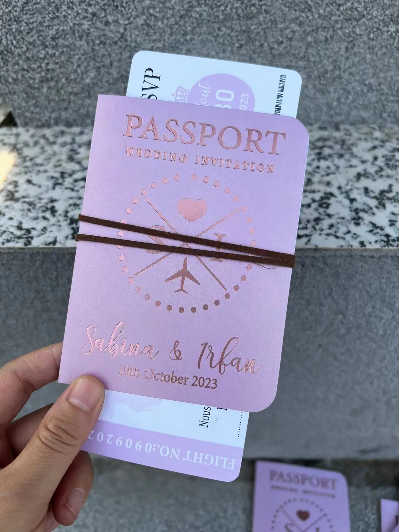 50set Gold Stempel Perle Papier Einladung Benutzerdefinierte Folie Text Reisepass Internat Tickets E...
