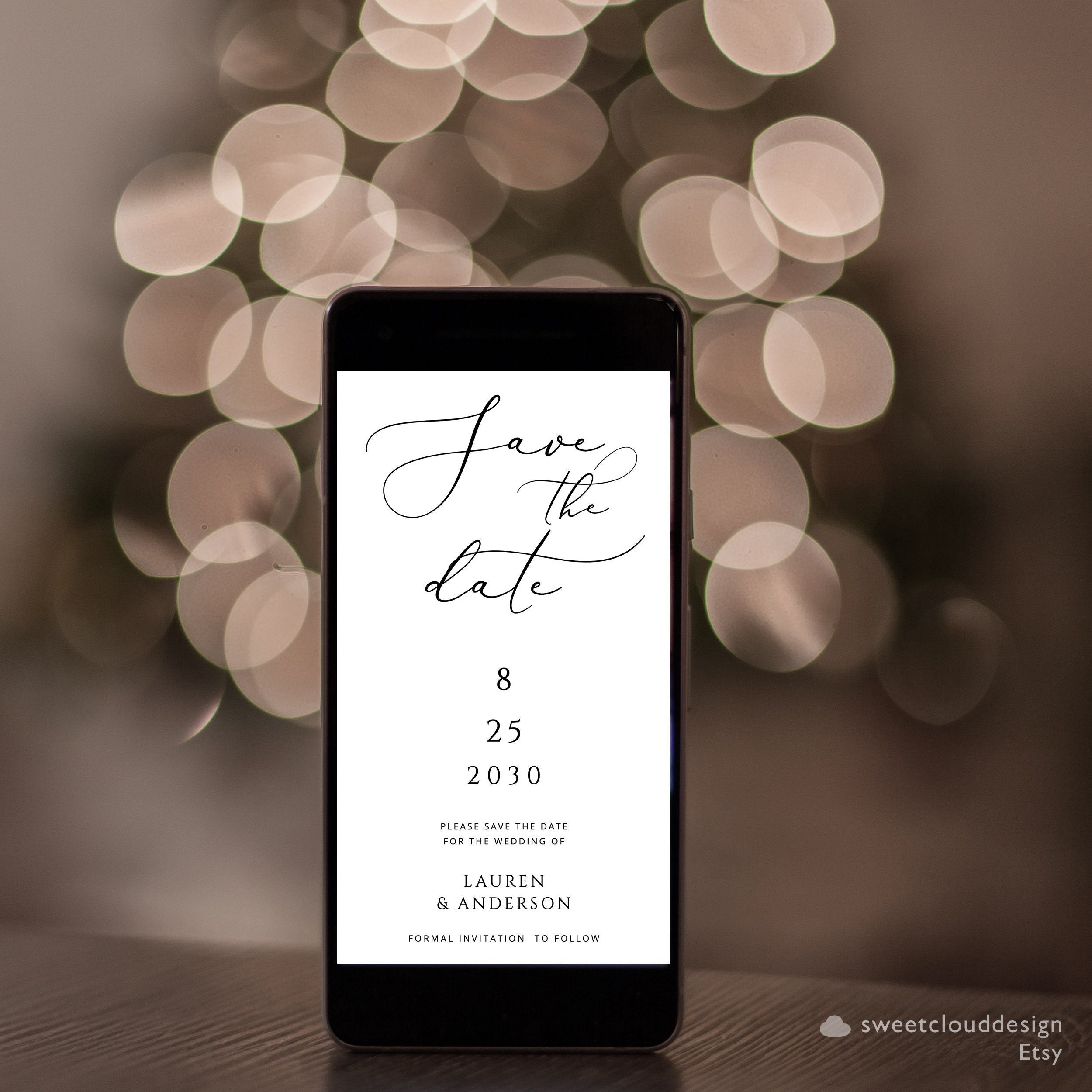 Diese MODERNE ELEGANT SAVE UNSER HOCHZEIT DATUM DIGITALE KARTE ist eine SOFORTIGE HERUNTERLADBAR und...