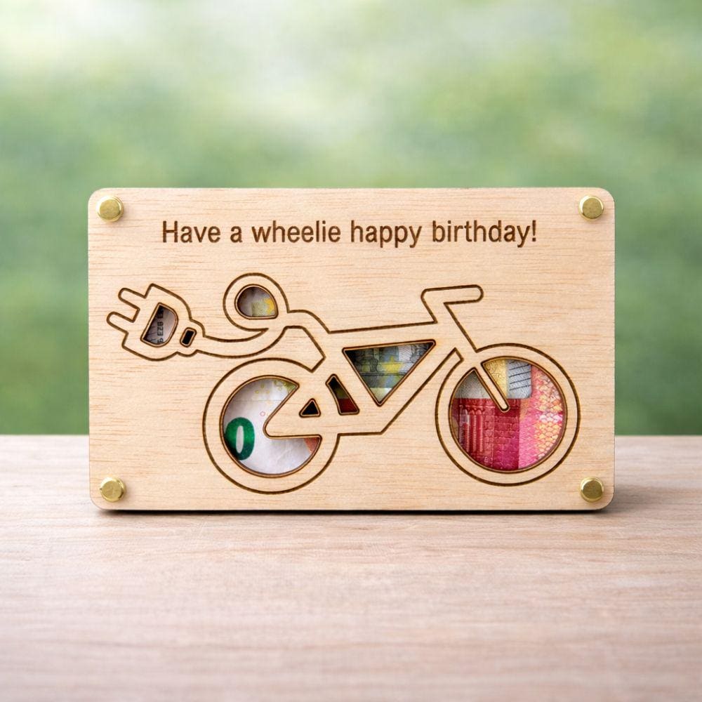 "Geldgeschenk E-Bike | Geschenk zum Geburtstag mit Elektro-Fahrrad | Handgemacht aus Holz | per...