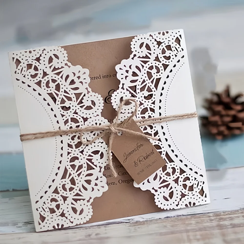 50Pcs Laser Cut Hochzeit Einladungen Karte Retro Vintage Hochzeit B...