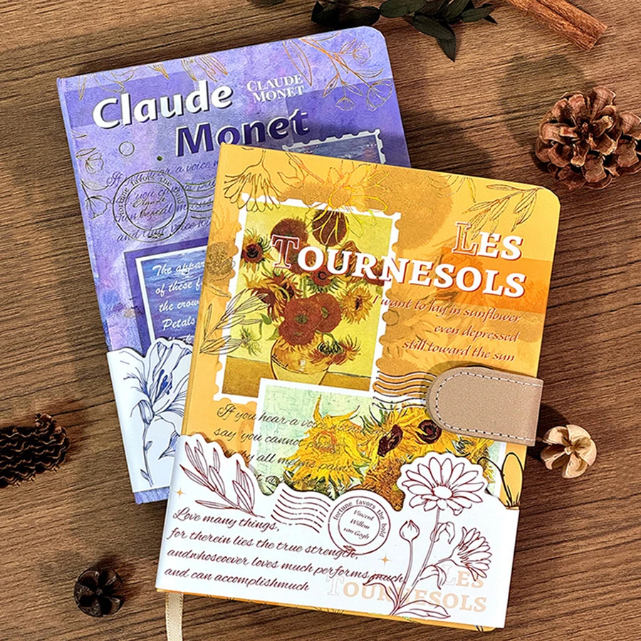 Hardcover Notizbuch van Gogh & Monet Gemälde Farbseite Illustration Magnets chnalle Retro T...