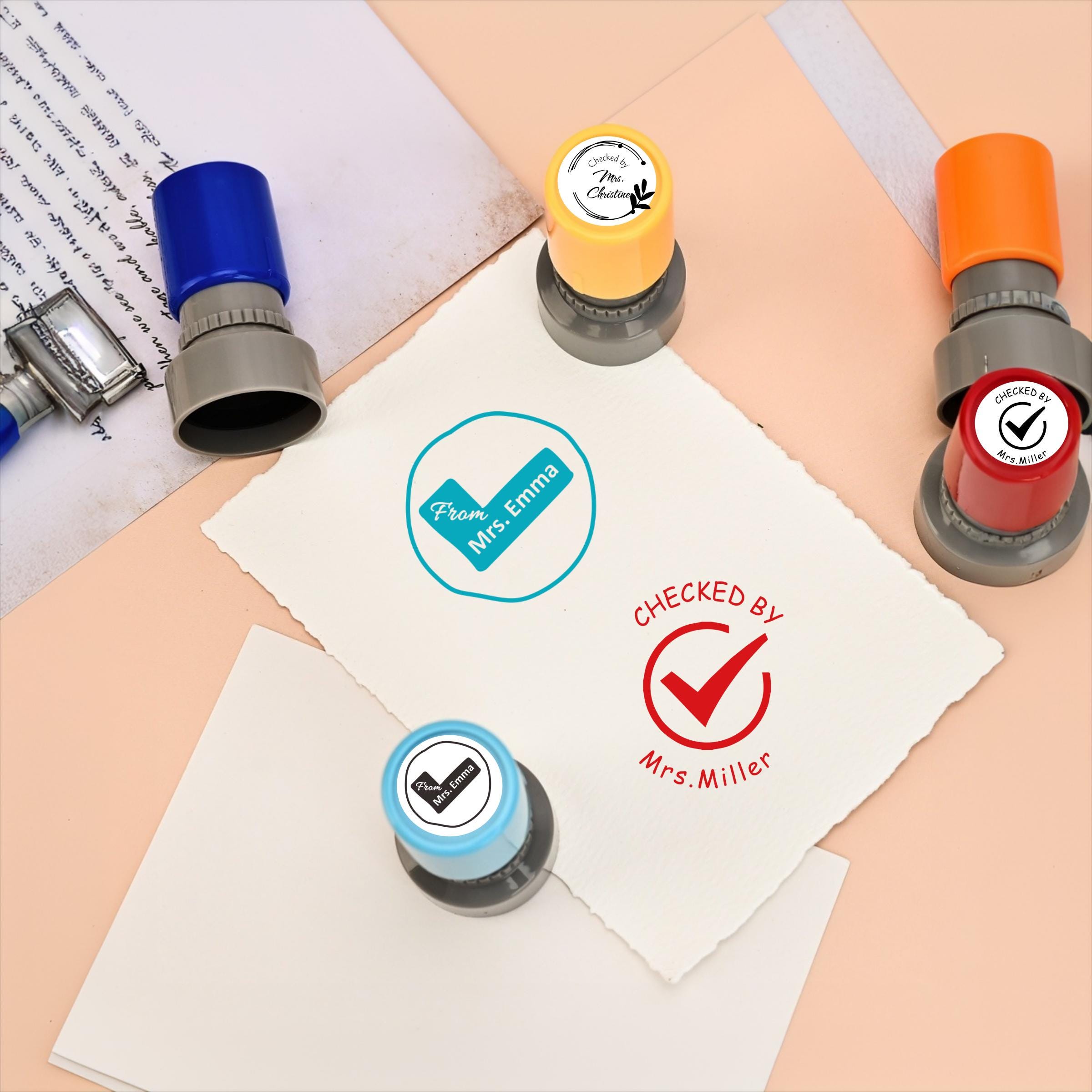 Geprüft von mit Lehrernamenstempel, personalisierte Lehrerstem...