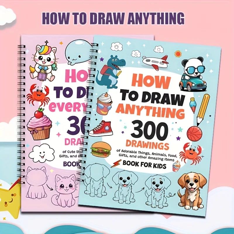 2er-Pack Malbücher – 300 süße Zeichnungen, lernt alles zu zeichnen, Schritt-f&...