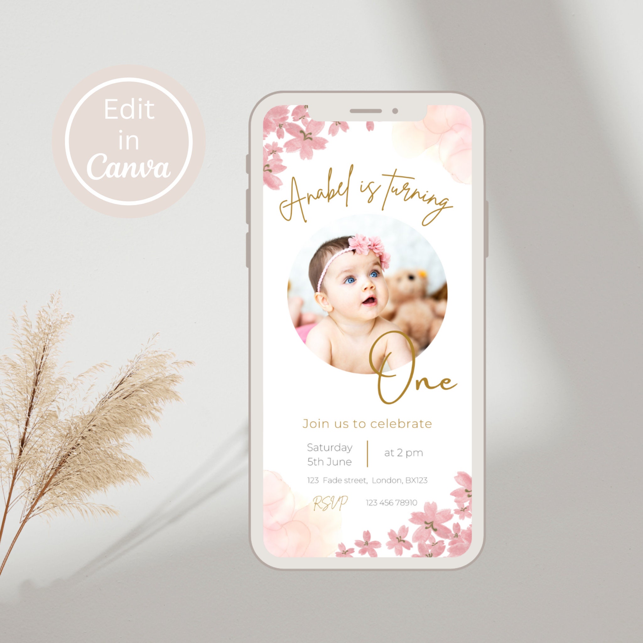 Feiere den Geburtstag deiner Kleinen mit dieser simplen, elektronischen Einladung! Ändere Schri...