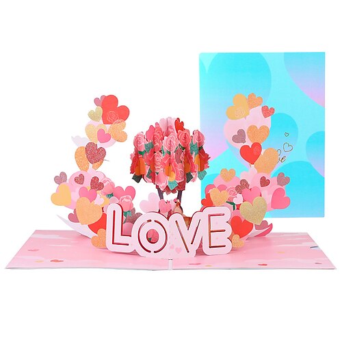 3D Liebe Herz Pop-Up-Karte pinke Geschenke Verlobungen Ehefrau Freu...