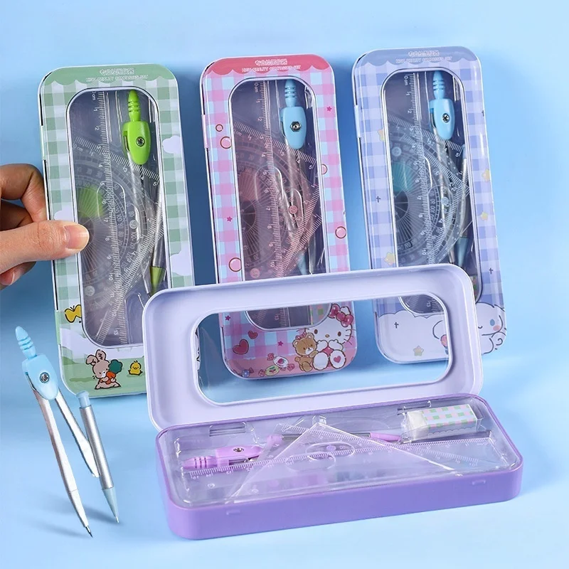 Einfarbiges Kompass Set Lineal Geschenk box 7-teiliges multifunktion ales Briefpapier Set Schül...
