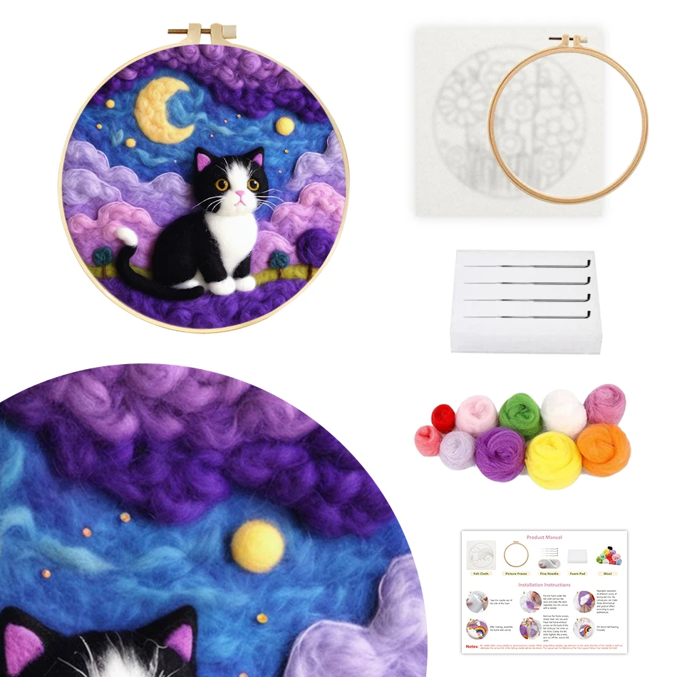 SDOYUNO Wollfilz-Malset, neues lila Filz, süße Katze, handgemachte Stickerei, Wolle, Nade...