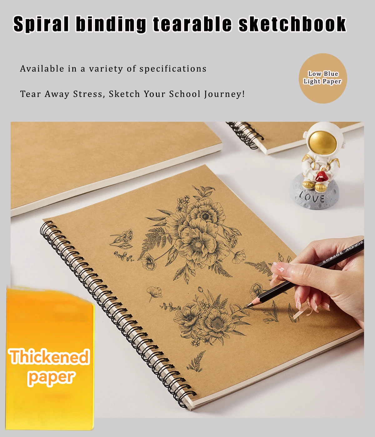 Spiralgebundenes Skizzenbuch, abreißbare, perforierte Seiten, tragbar, zum Zeichnen, Malen, Ku...