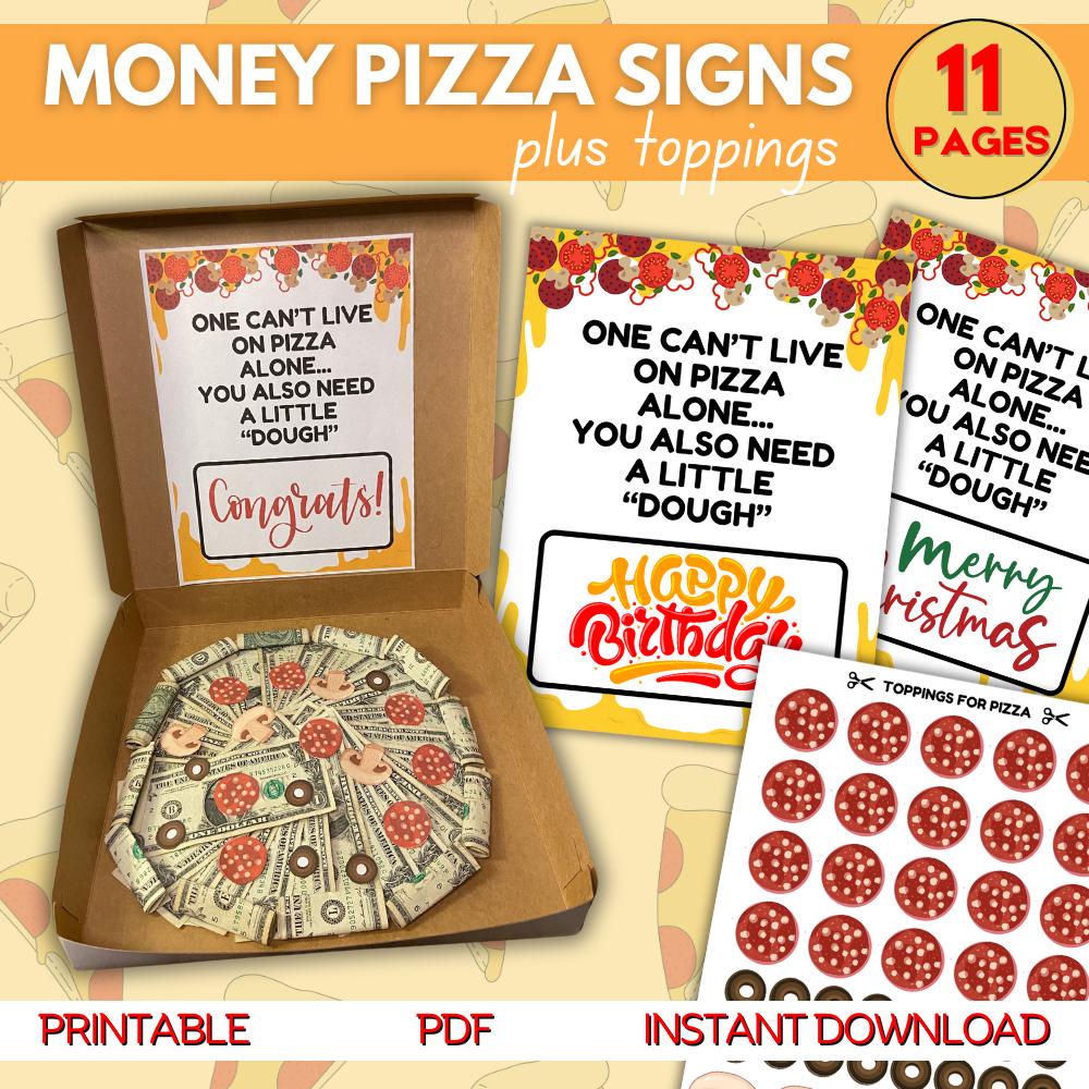 Druckbares Geld Pizza Zeichen Bundle, Geburtstag Geld Geschenk Idee...