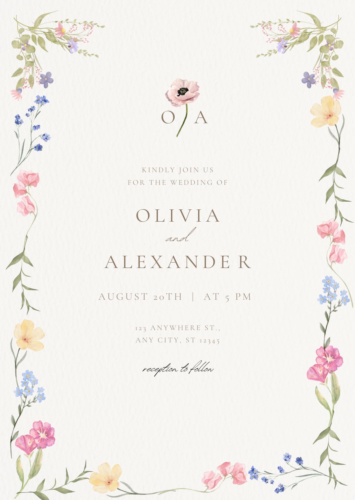Wildflower Wedding Invitation Template * Floral Wedding Invite * Ed...